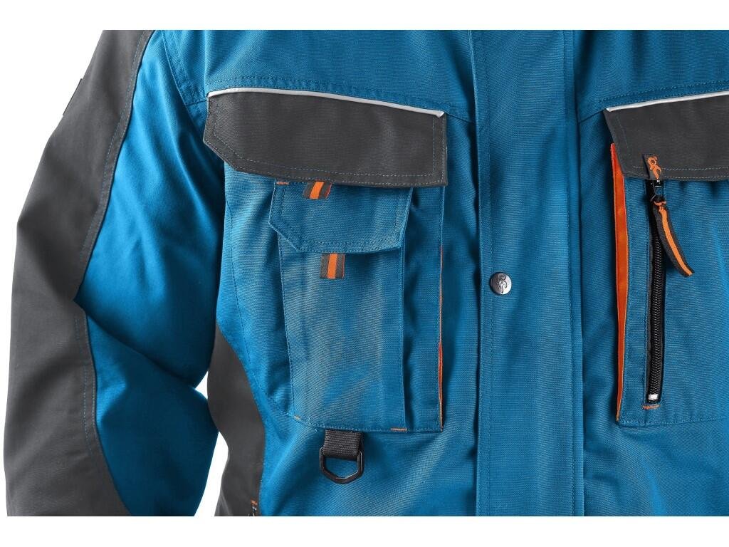 Pánská montérková blůza, ramena vyztužena 600D polyesterem, rukávy s nastavitelnou manžetou, kryté zapínání na zip a druky, multifunkční náprsní kapsy, boční kapsy na zip, regulovatelný pas, reflexní doplňky. Doporučené použití: stavebnictví, strojíDodatočné parametre